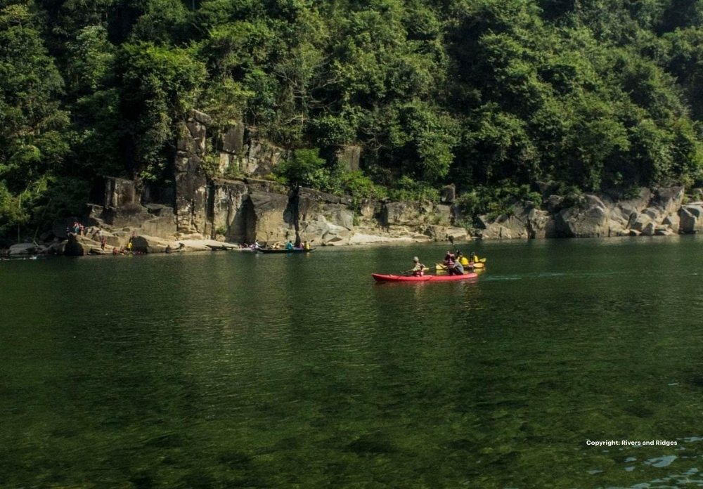 We will check out from our cottage post breakfast and head to Arwa cave, here we do a short walk in the limestone cave, we explore the cave walls that have ‘gastropod fossils’ dated back to 56 million years of existence. Then we head towards Shnongpdeng around 100 kms away after a stop in Mawlynnong, the much spoken about cleanest village in Asia. Due to its popularity it is always busy and therefore we take our lunch stop at a preferred choice of restaurant and as per the lunch time for our clients.Continuing our road trip further we travel close to the Indo-bangladesh border Dawki and travel upstream on the Dawki river to a small village called Shnongpdeng. Our campsite is across the river and it takes us 10 -15 mins on a canoe. Take only what is necessary option is available with extra baggage to be left back in the vehicle. Tent Stay in Schnongpdeng by Dawki river on a secluded sandbank. Reach Shnongpdeng by 6:00 pm Dinner at 8:30 pm